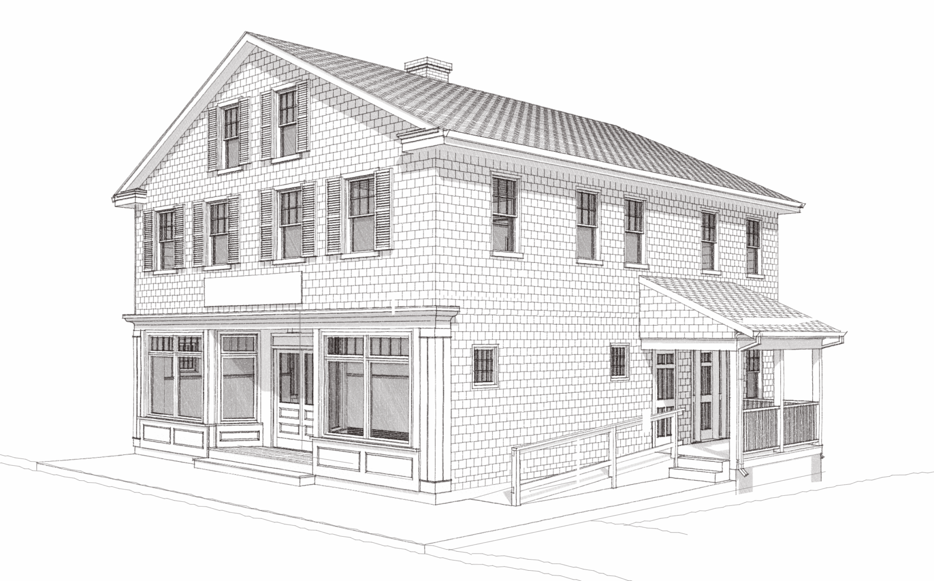 brennan+company architects is working on the renovation of the Staub Art Studio building in Catonsville, MD. We are working with the owner to renovate the early 20th century commercial building to include a historic storefront that welcomes the community. The renovation has revealed original cedar shakes that had been hidden under the horizontal aluminum siding.